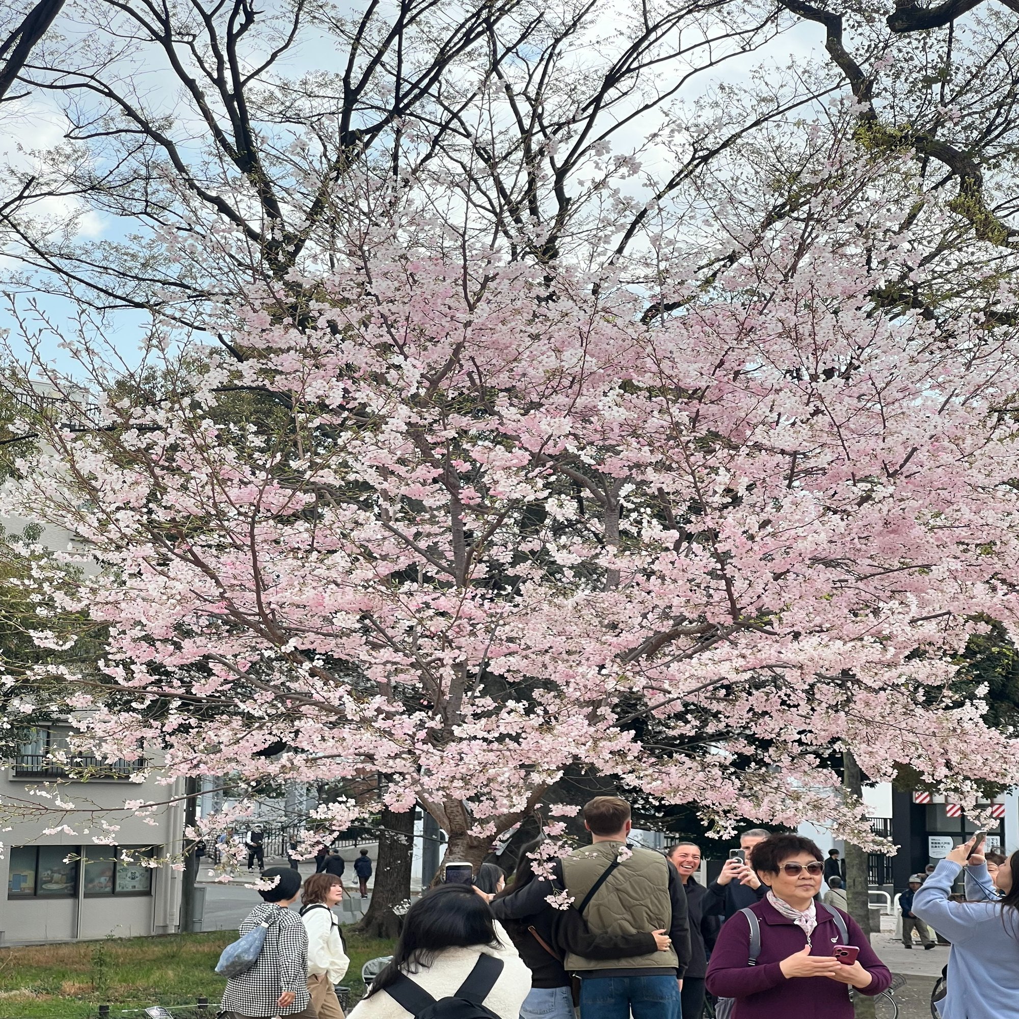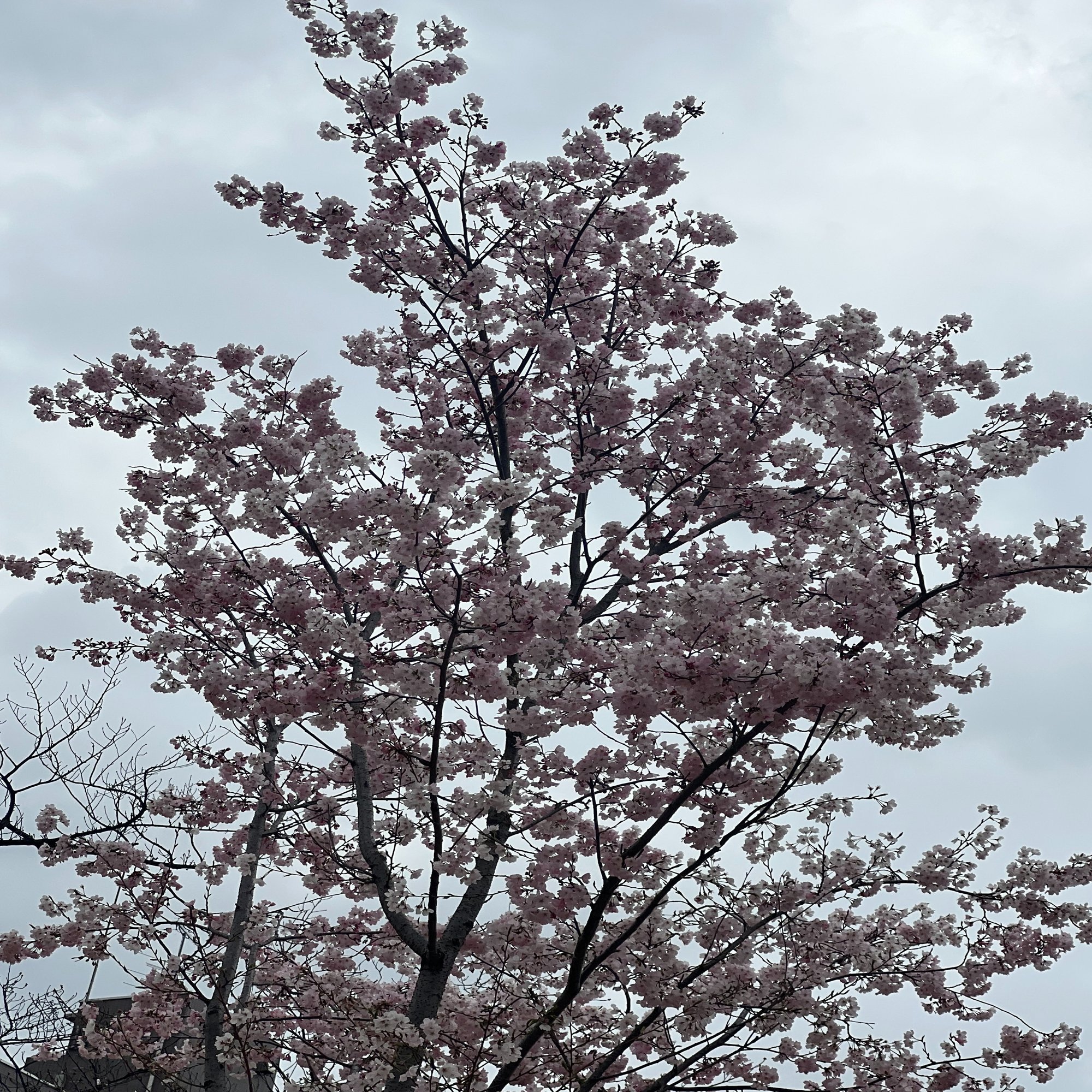 曇り空に桜!満開です